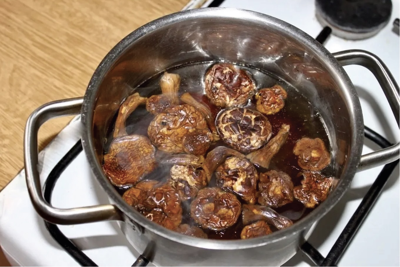 Dodaj kilka suszonych grzybów i pozostaw do namoczenia na 20 minut.