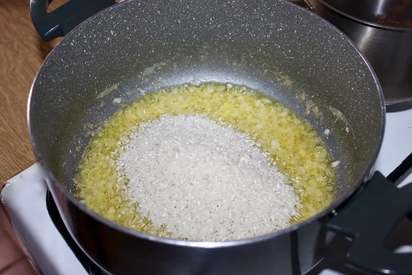 Gdy większość bulionu odparuje, wlej kolejną chochlę. Powtarzaj ten proces, aż ryż będzie „al dente”.