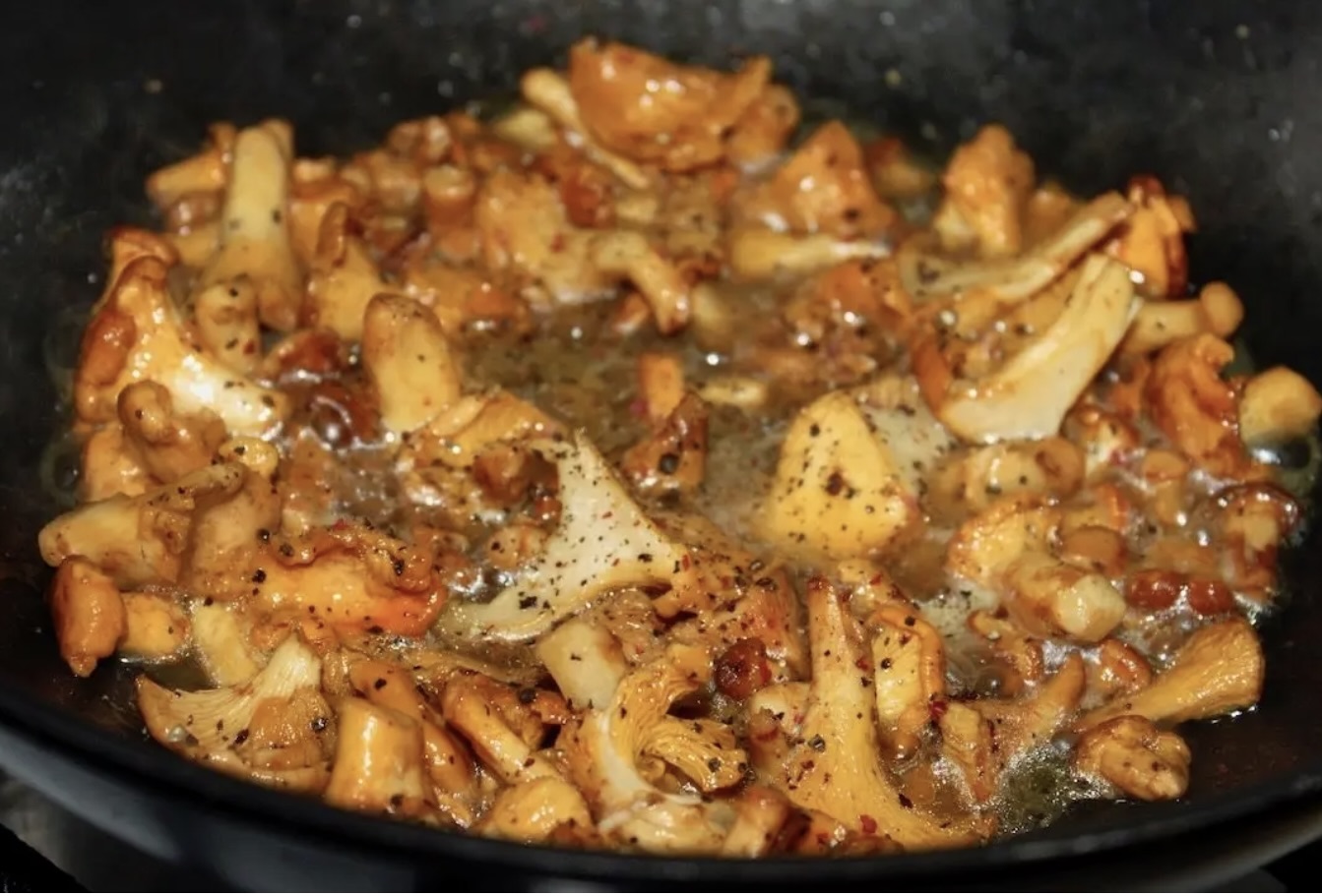 Wrzuć kurki na patelnię z roztopionym masłem klarowanym.