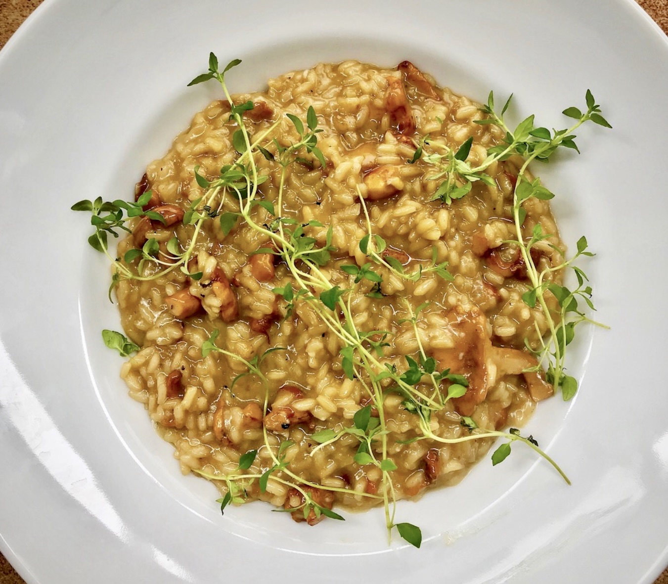 Risotto z kurkami podawaj w głębokich talerzach. Dobre risotto jest lekko lub dość mocno „lejące się”.