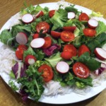Baza: 250 g cienkiego makaronu ryżowego, opakowanie miksu sałat