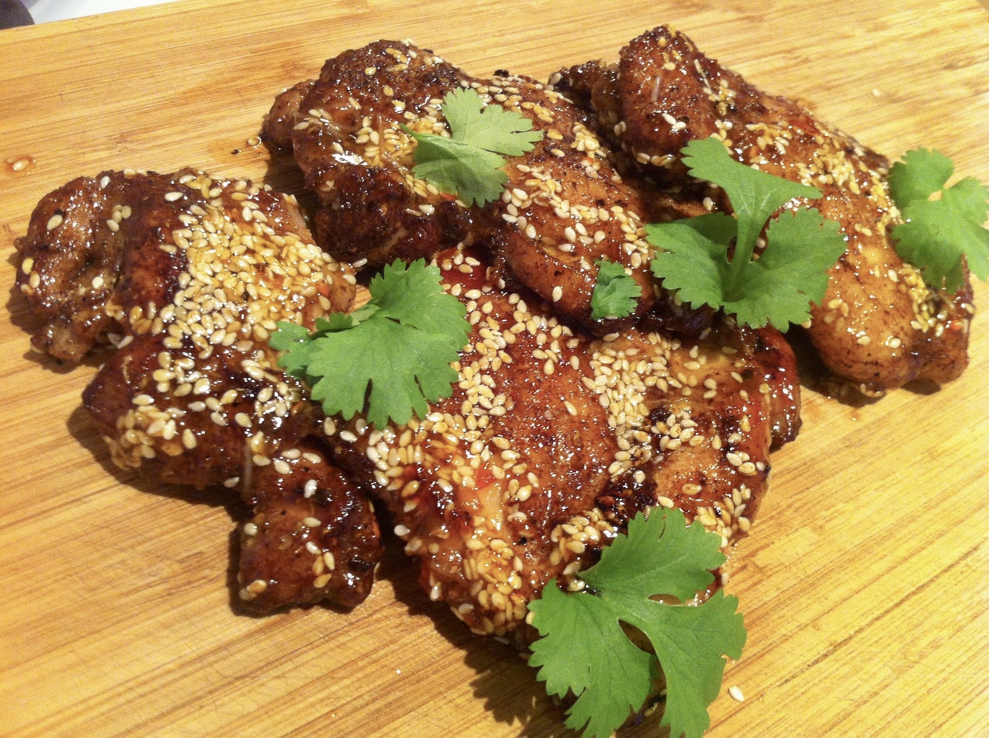 Przyprawy i sosy: przyprawa chińskie pięć smaków (dość dużo), miód, sos rybny, olej sezamowy prażony, sos sojowy, sól, pieprz