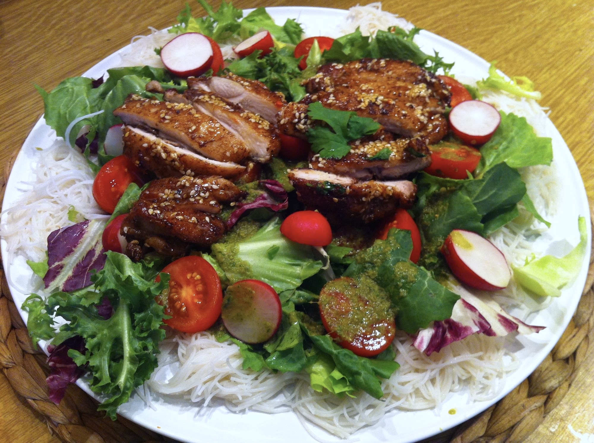 Azjatycka sałatka z kurczakiem najlepiej smakuje podawana w temperaturze pokojowej.