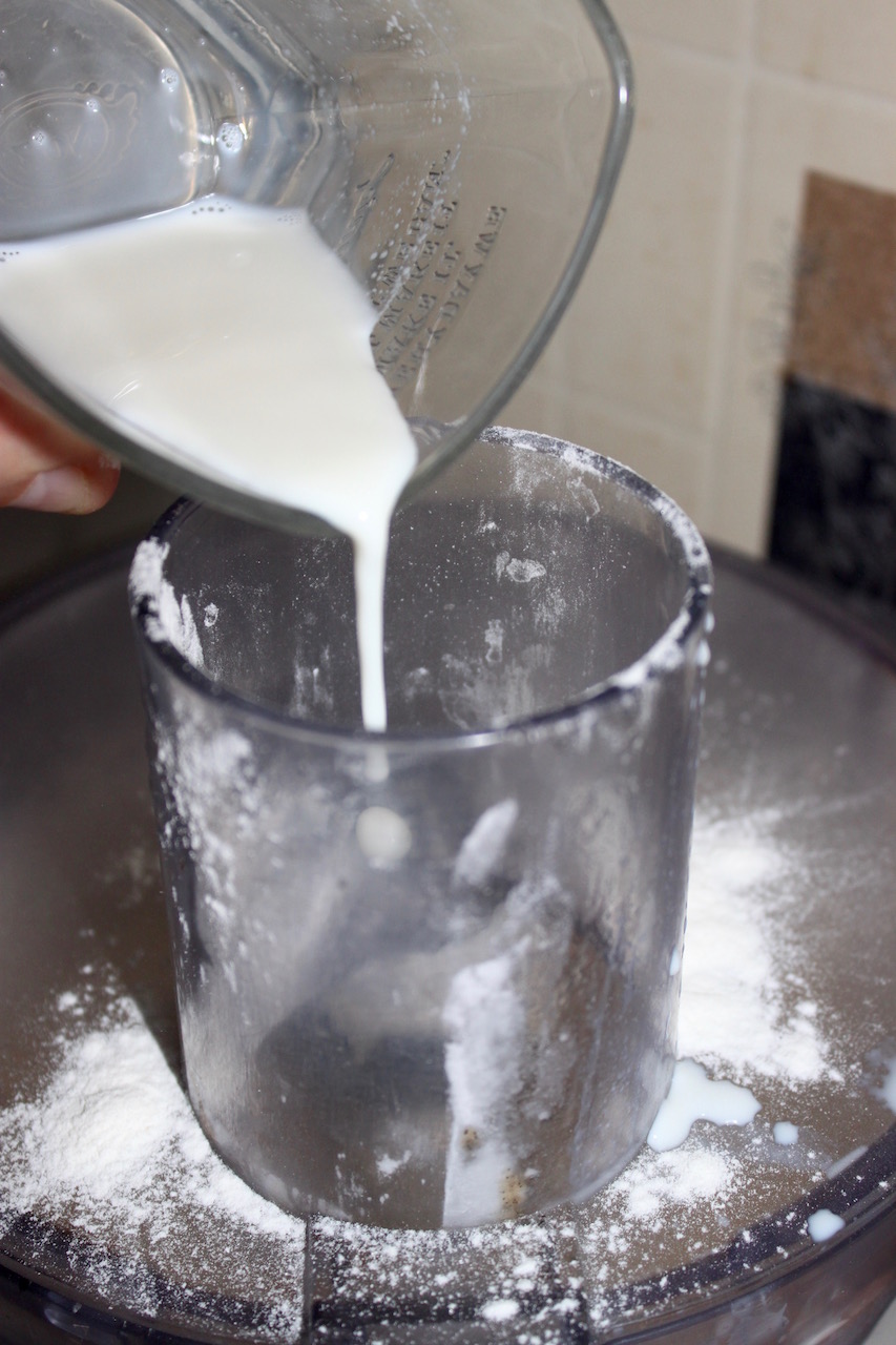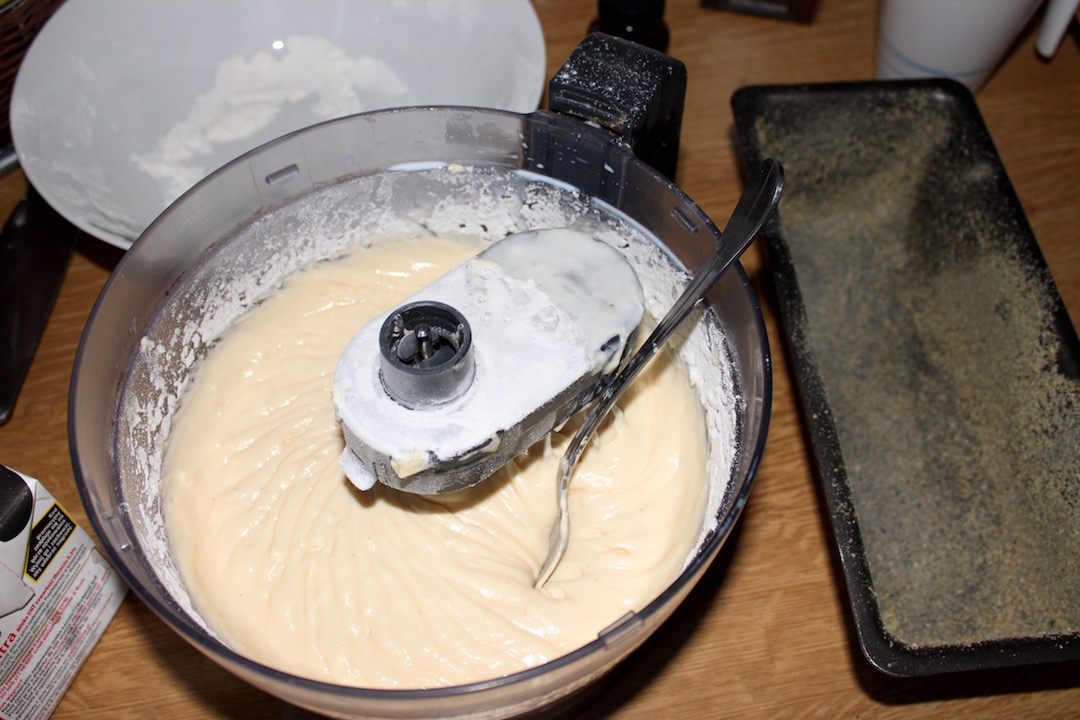 Łączenie ciasta: Do miksowanej masy dodawaj na zmianę mąkę (z proszkiem) i mleko, aż wszystkie składniki się połączą i powstanie gęsta masa.