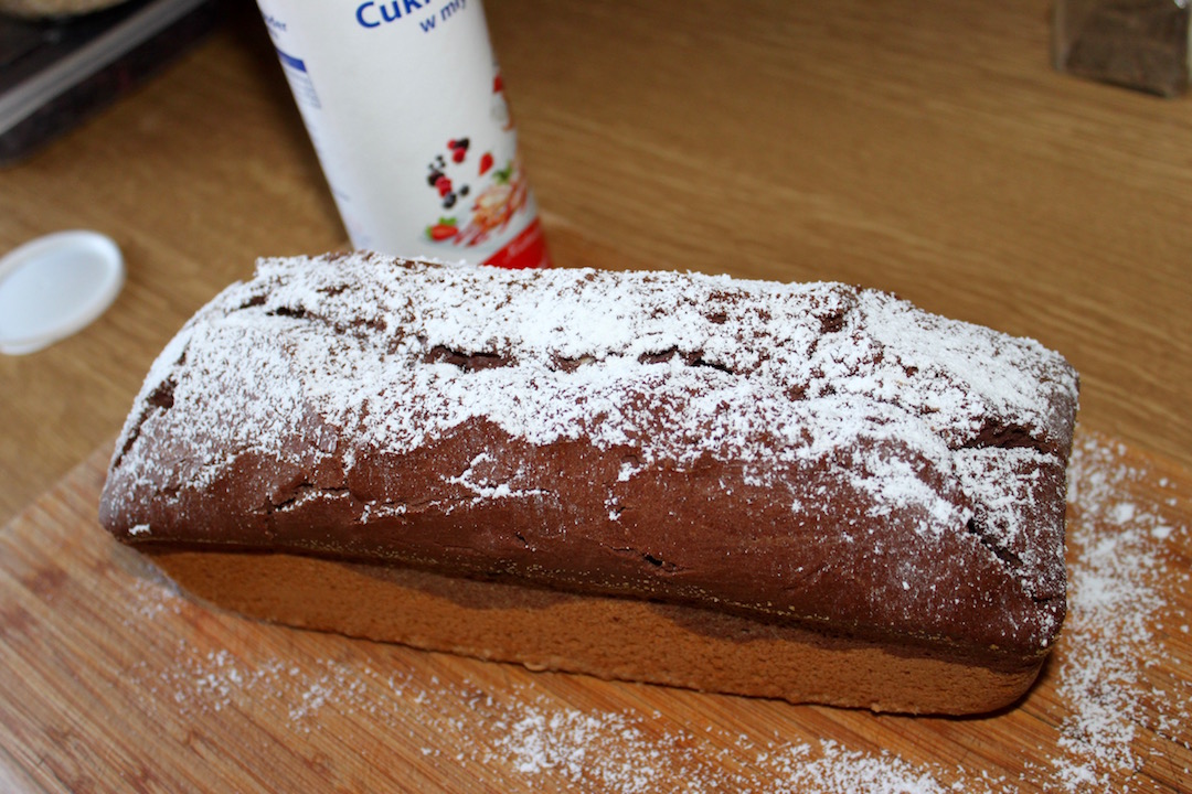 Wykończenie: Upieczone ciasto wyjmij i pozostaw do przestygnięcia. Kiedy będzie letnie, obficie posyp je cukrem pudrem.