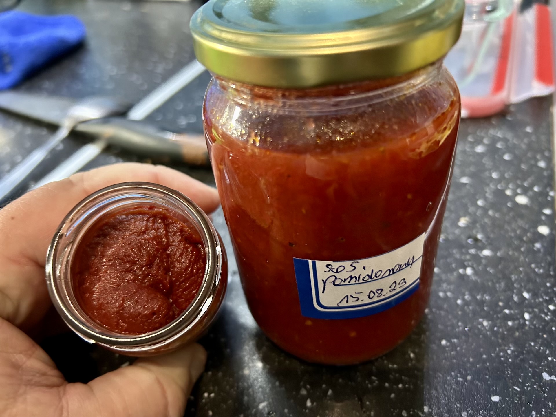 Zetrzyj pomidora na tarce o dużych oczkach, a następnie dodaj do warzyw wraz z koncentratem pomidorowym.