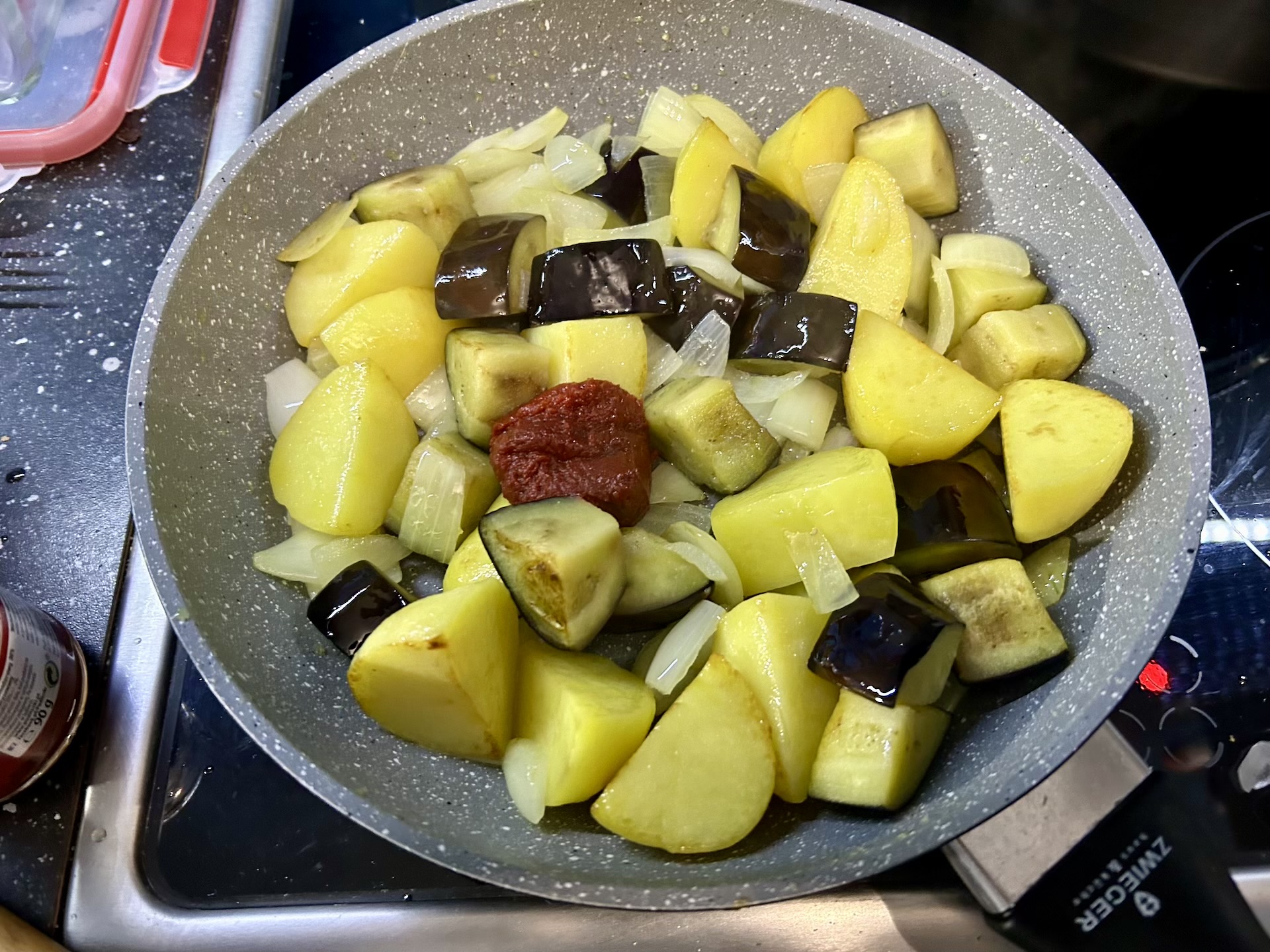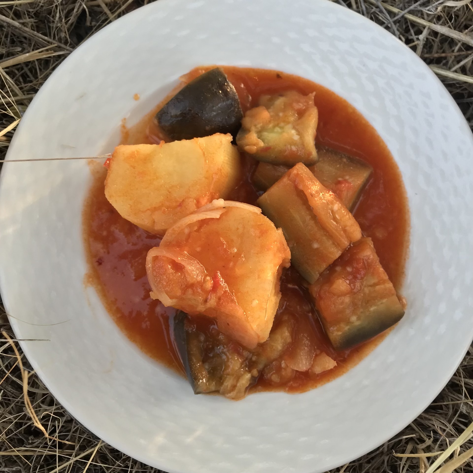Bakłażan duszony ziemniakami przygotowuje się błyskawicznie i bardzo łatwo. Oto specjalnie dla Was przysmak prosto z Krety. Bakłażan pokrojony na duże kawałki i duszony z ziemniakami w sosie pomidorowym tworzy obiad idealny na letnie upały. Wiem, że większość Polaków nie ma pojęcia co zrobić z bakłażanem, więc na swym blogu spieszę z pomocą. Większość przepisów z dodatkiem bakłażana przywiozłem z Grecji. Tam potrafią z bakłażanów tworzyć wyśmienite dania. Choćby i to. Tu nie ma żadnej filozofii, ale uwierz, będziesz mlaskać z zadowolenia podczas jedzenia tak przygotowanego dania z bakłażanem.