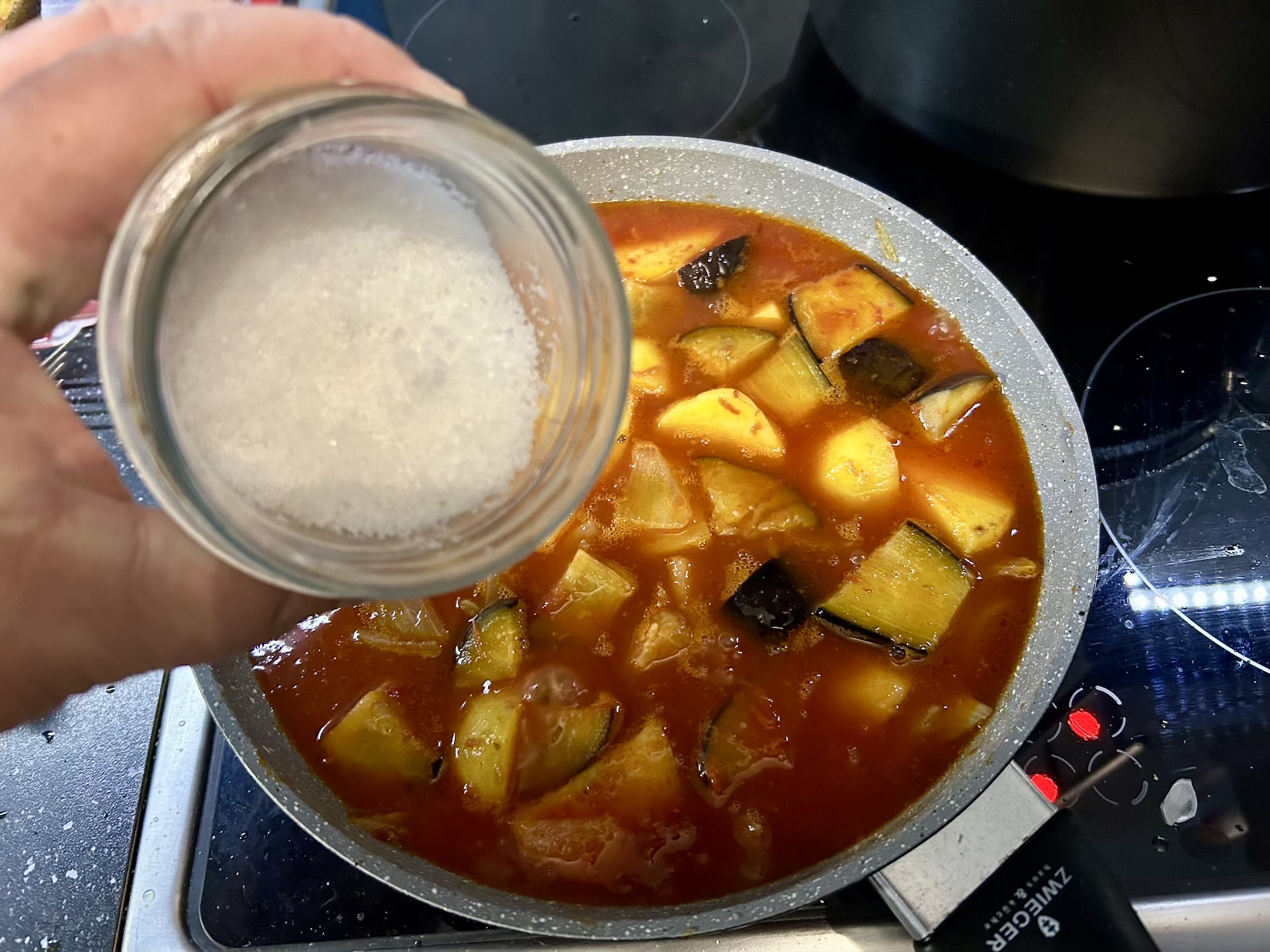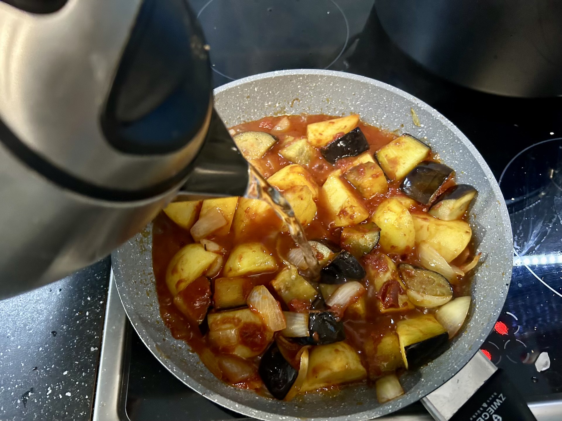 Zamiast mieszać łyżką (aby nie rozwalić warzyw i nie zrobić „papki”), delikatnie poruszaj całym garnkiem, by przyprawy się rozprowadziły.