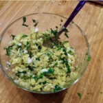 Przygotowanie farszu: Do małej miseczki wlej 4 łyżki oliwy extra vergine i wgnieć dwa obrane ząbki czosnku. Dodaj garstkę posiekanej natki pietruszki, a także drobno pokruszone okruchy czerstwego pieczywa lub bułki tartej (np. panko). Całość posól, popieprz, wymieszaj i odłóż na bok.