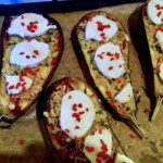 Finalne zapiekanie: Wyjmij bakłażany z piekarnika i rozłóż na nich mozzarellę oraz chilli. Następnie wstaw blachę z powrotem do piekarnika i piecz do momentu, aż mozzarella się stopi.