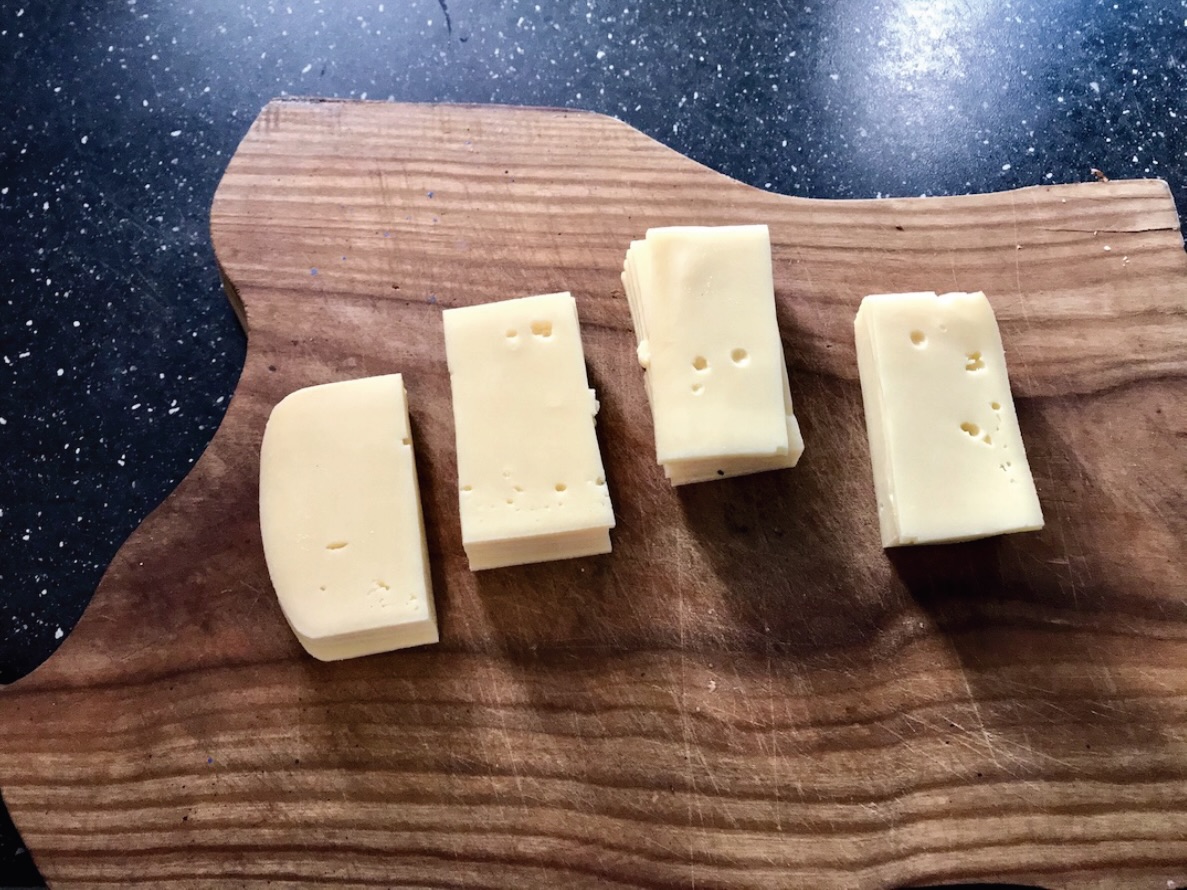 Przygotowanie dodatków: W międzyczasie pokrój ser raclette na kawałki i pokrój speck w drobną kostkę (autor przepisu podkreśla, by użyć oryginalnych i dobrej jakości składników).