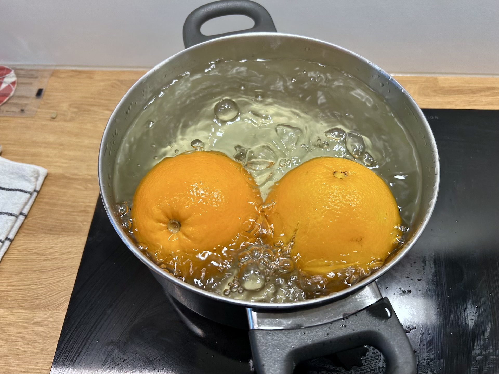 Całe pomarańcze (ze skórką, nieobierane) włóż do garnka, a następnie gotuj przez 2 godziny.