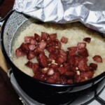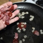 Przesmażanie Składników: Na smalcu przesmaża się pokrojoną słoninę i kiełbasę z jelenia, a następnie dodaje do kapusty. Następnie na tym samym tłuszczu smaży się zamarynowane mięso z dzika i sarny i również przekłada do garnka.