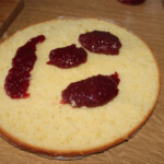 Spód biszkoptu wysmaruj 3 łyżkami dżemu malinowego.
