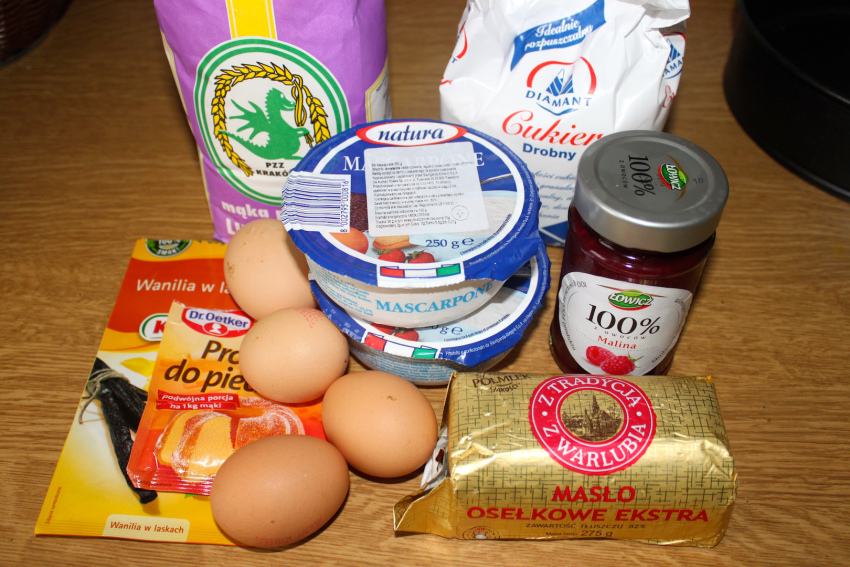 Biszkopt z mascarpone przełożony masą z sera mascarpone i dżemem to dowód na to, że warto coś słodkiego raz na czas zjeść. Z okazji, albo bez okazji. To szybki w przygotowaniu biszkopt przekładany masą z serem oraz dżemem malinowym. Ciasto jest delikatne i bardzo wykwintne, najlepiej podawać je z kieliszkiem dobrego, półwytrawnego wina musującego.