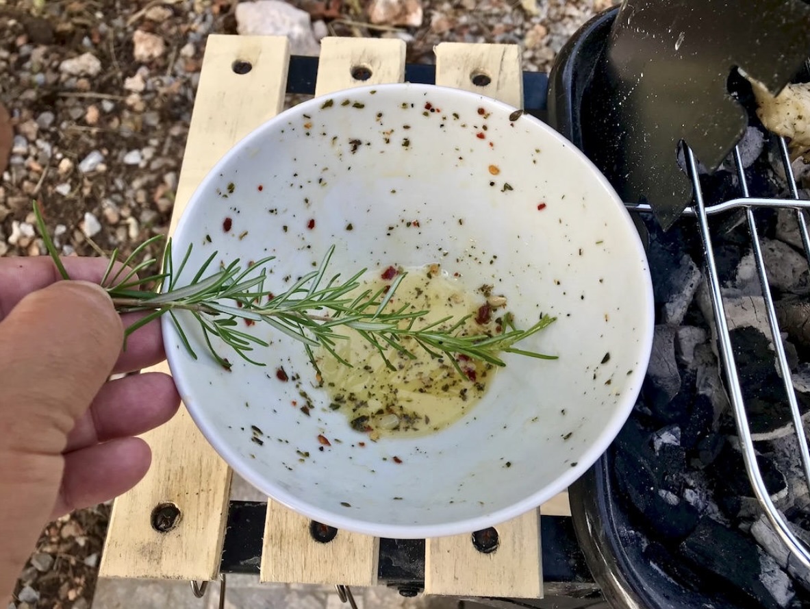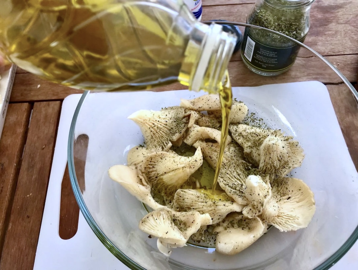 Podczas grillowania: W trakcie grillowania smaruj grzyby od czasu do czasu pozostałą w misce marynatą (można to robić za pomocą gałązki świeżego rozmarynu).