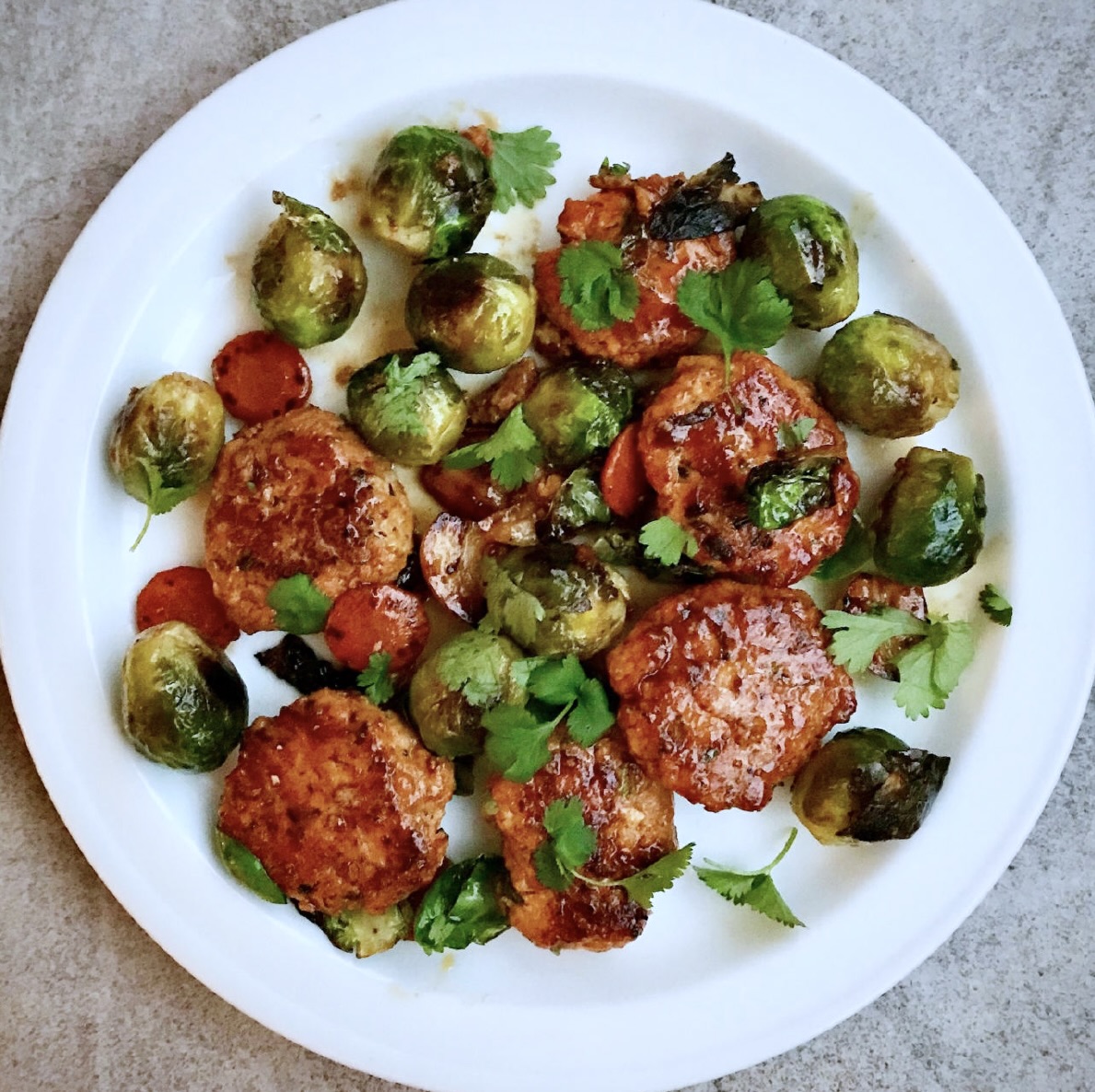 Łosoś: przygotowany wcześniej w formie małych kotlecików (polecam kotleciki z łososia po tajsku)