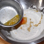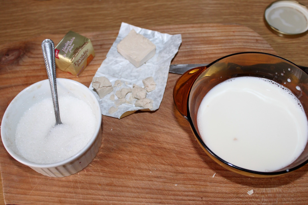 W letnim mleku rozpuść cukier i drożdże. Przykryj i odstaw na 15 minut, aby drożdże zaczęły pracować.