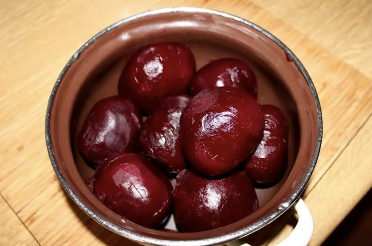 Wyjmij ugotowane buraki z garnka i pozostaw do przestygnięcia, tak aby można było zdjąć z nich skórkę.