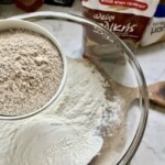 Mieszanie suchych składników: Do dużej miski przesiej mąkę pszenną, a następnie dodaj do niej mąkę pełnoziarnistą.