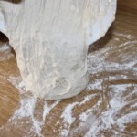 Wyrób ciasto na blacie delikatnie podsypanym mąką przez 10 do 15 minut, starając się użyć jak najmniejszej ilości mąki, by ciasto stało się elastyczne.