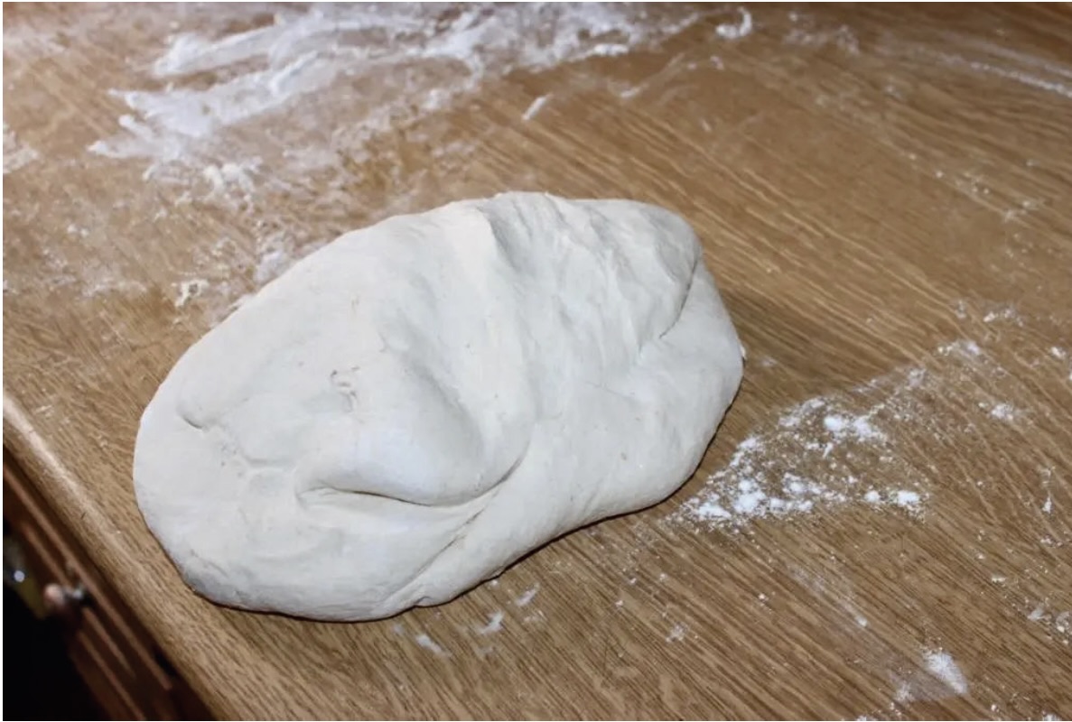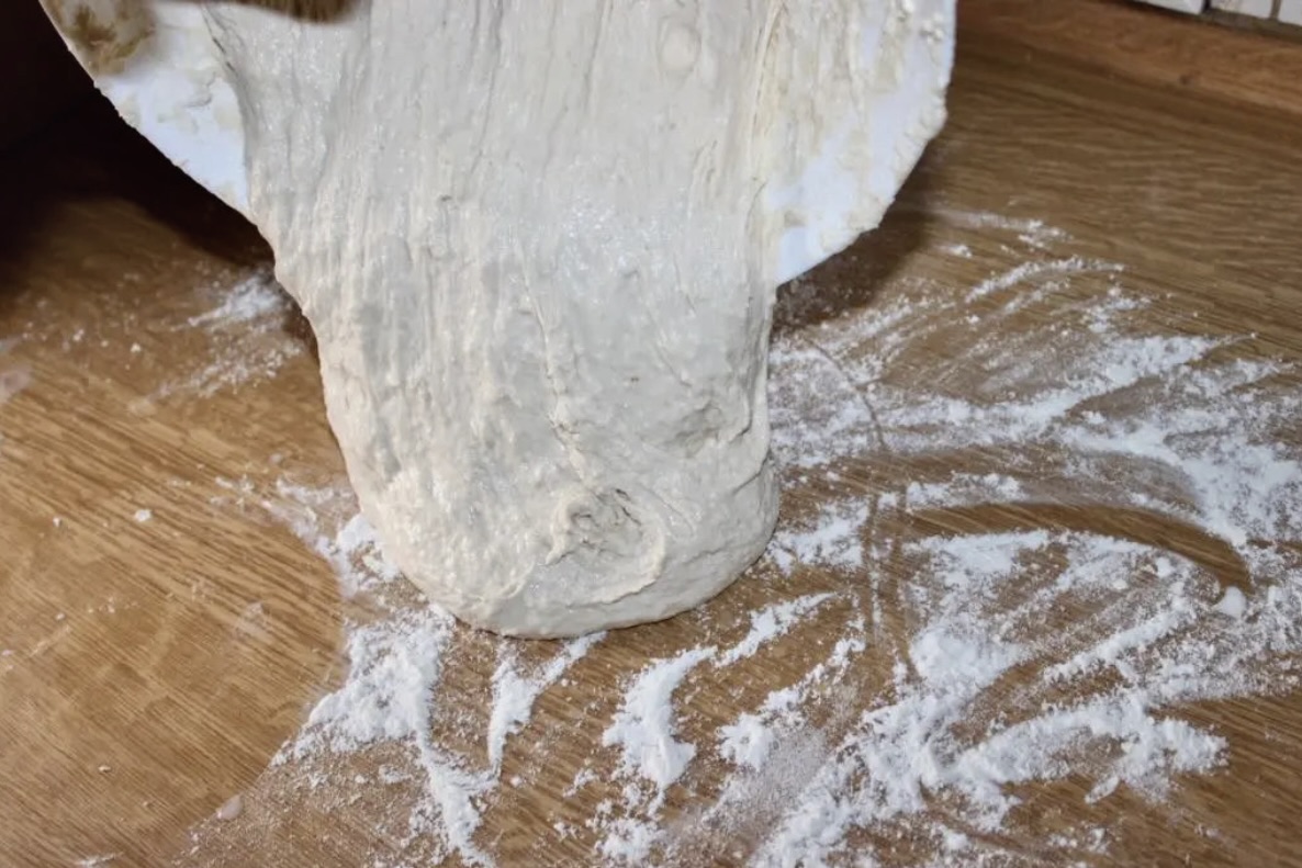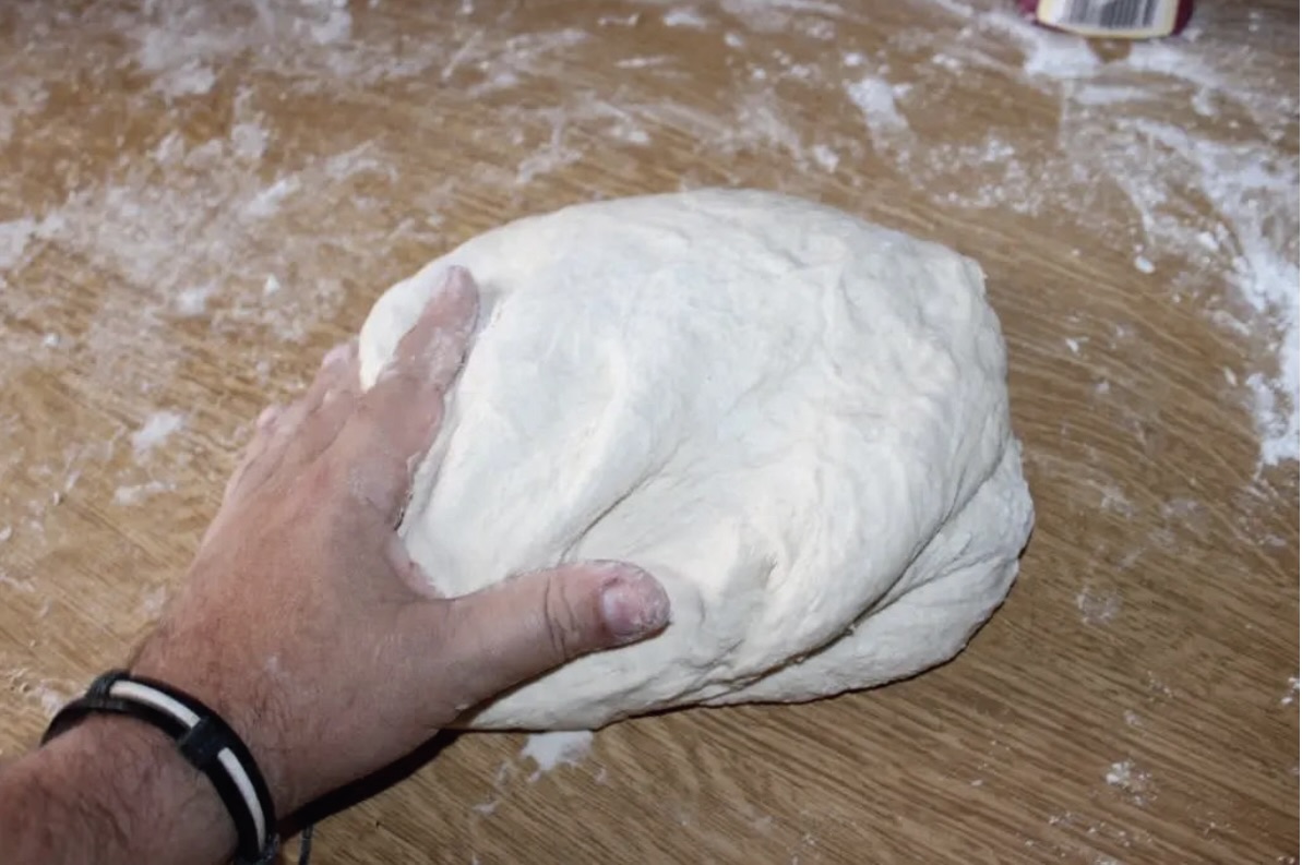 Wyrób ciasto na blacie delikatnie podsypanym mąką przez 10 do 15 minut, starając się użyć jak najmniejszej ilości mąki, by ciasto stało się elastyczne.