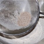Do miski przesiej oba rodzaje mąki (pełnoziarnistą i zwykłą). Nie wyrzucaj „śrutu” z mąki pełnoziarnistej, tylko dodaj go do miski.