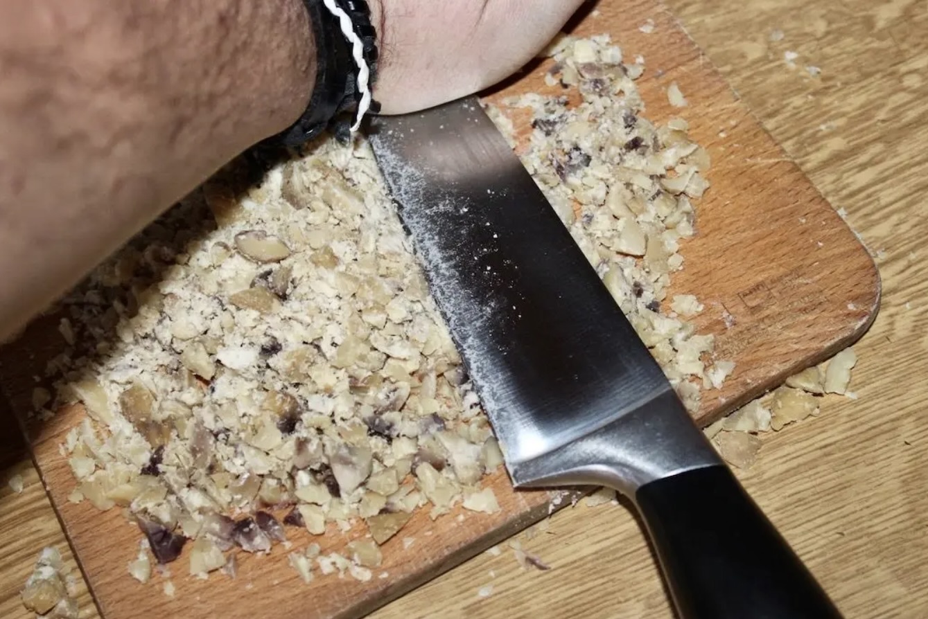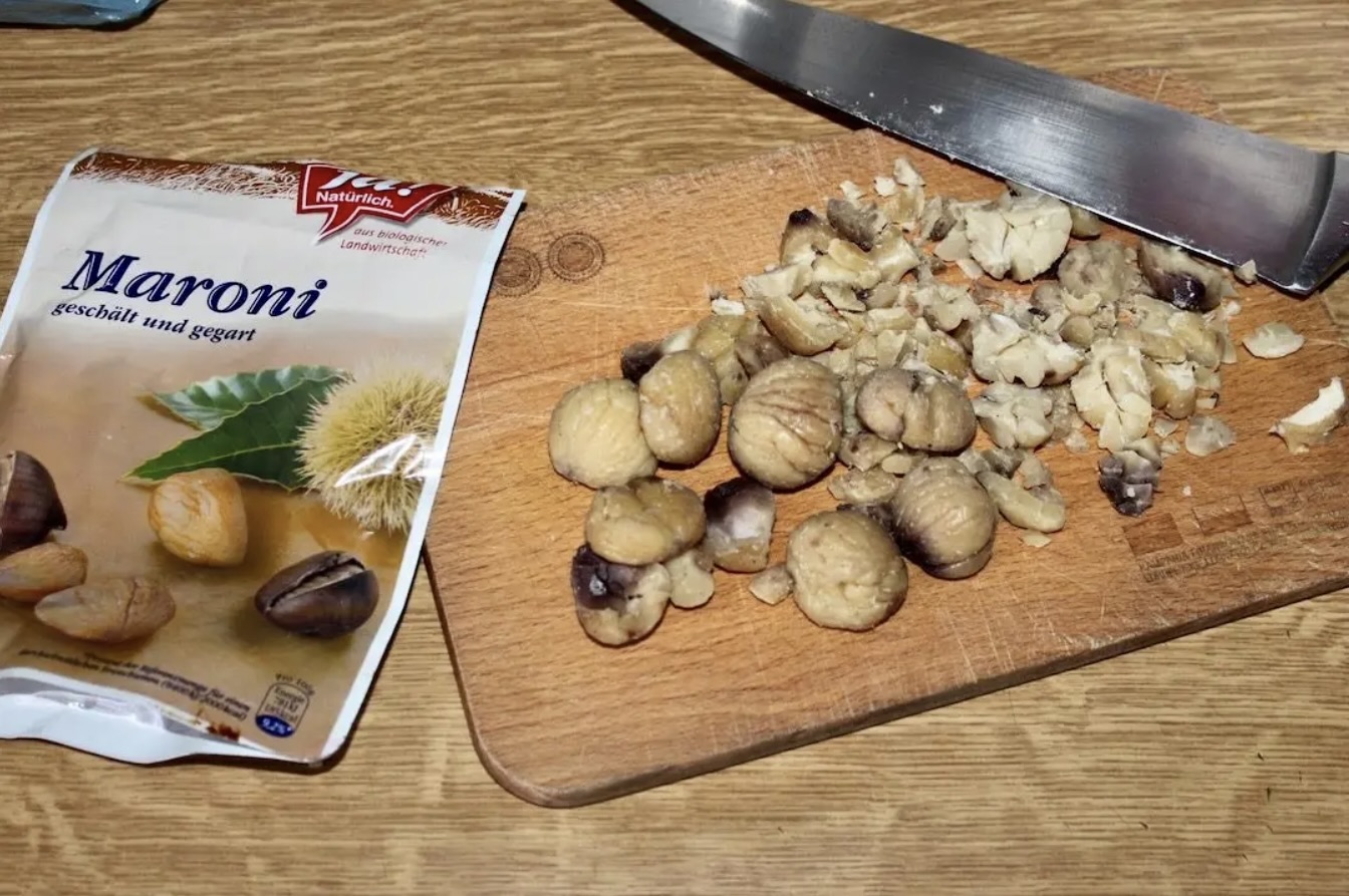Posiekaj kasztany grubo lub drobno, według własnych preferencji. Możesz również część z nich zetrzeć na mąkę.