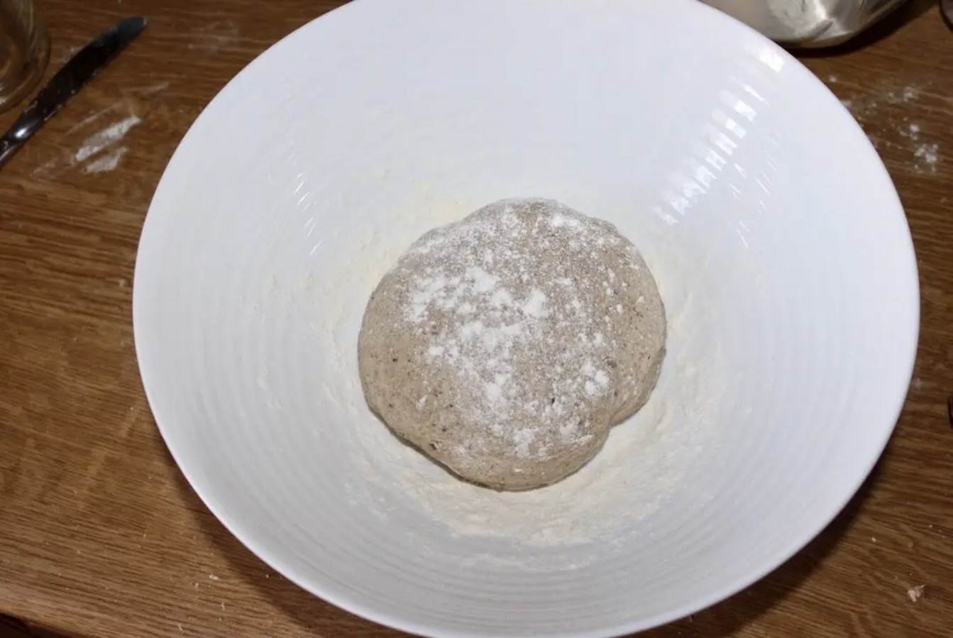 Uformuj kulę z ciasta, włóż do szklanej miski, lekko posyp mąką i przykryj suchą ściereczką.