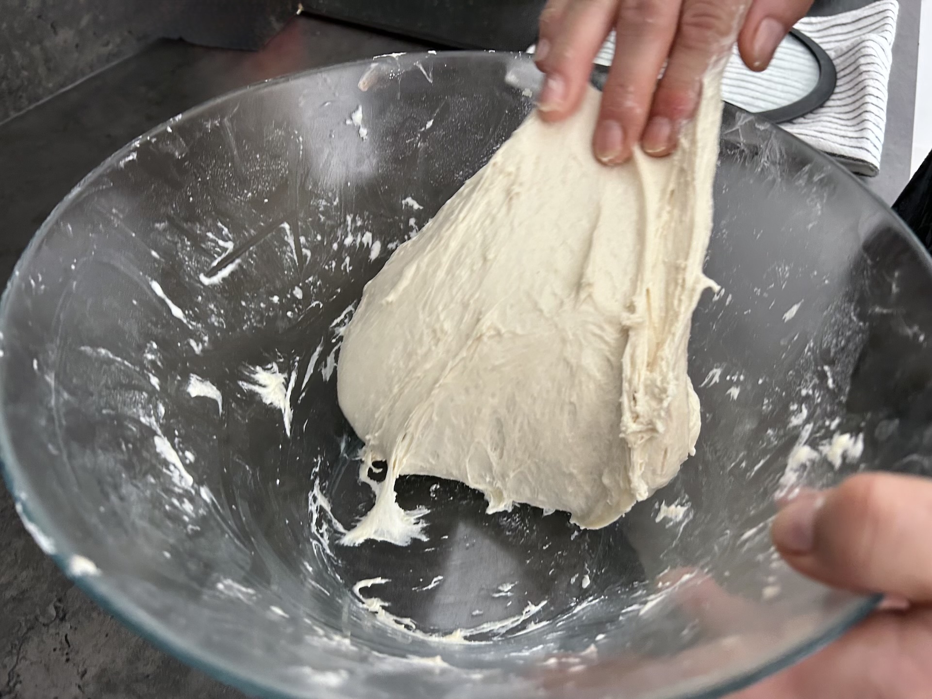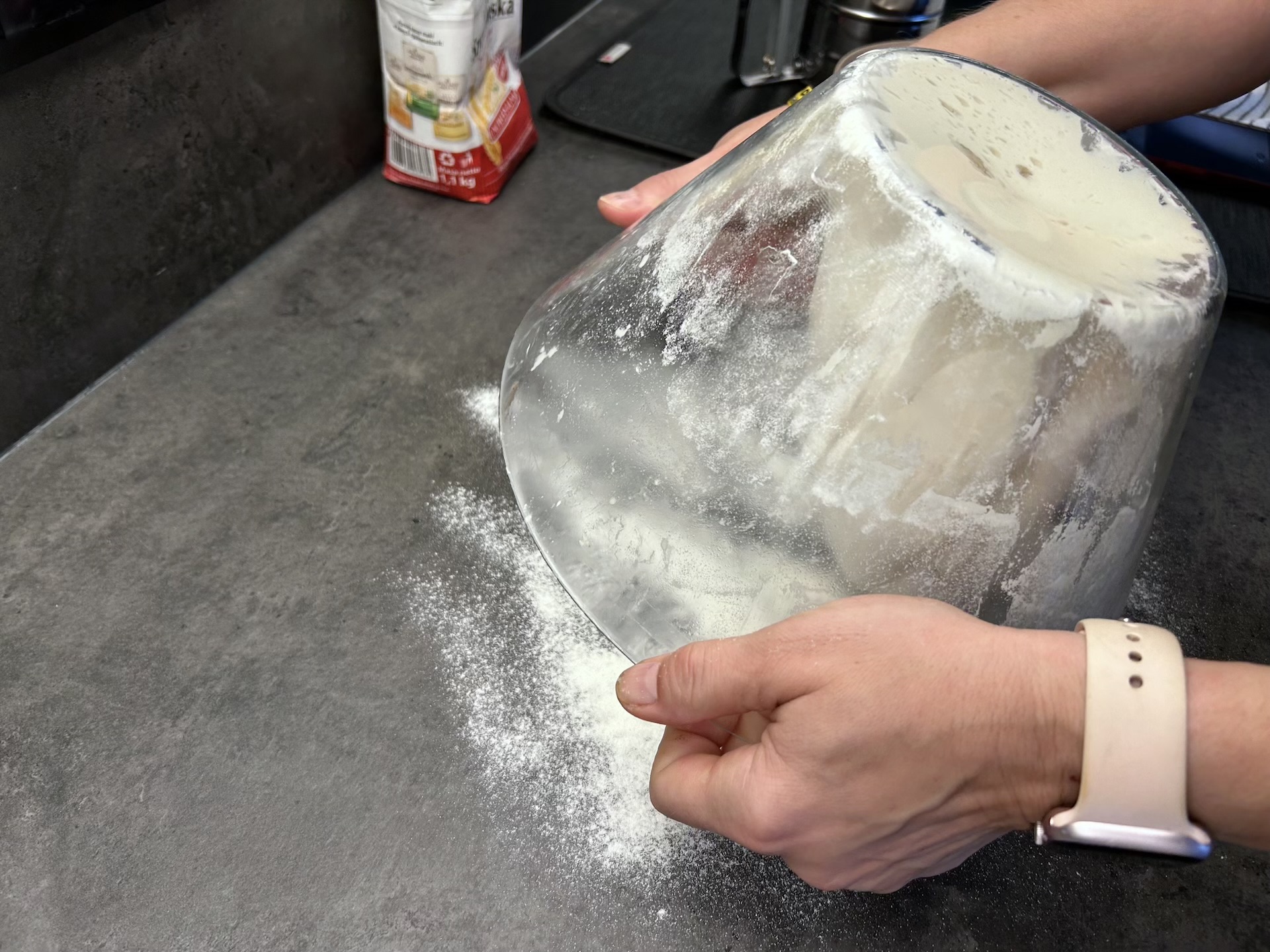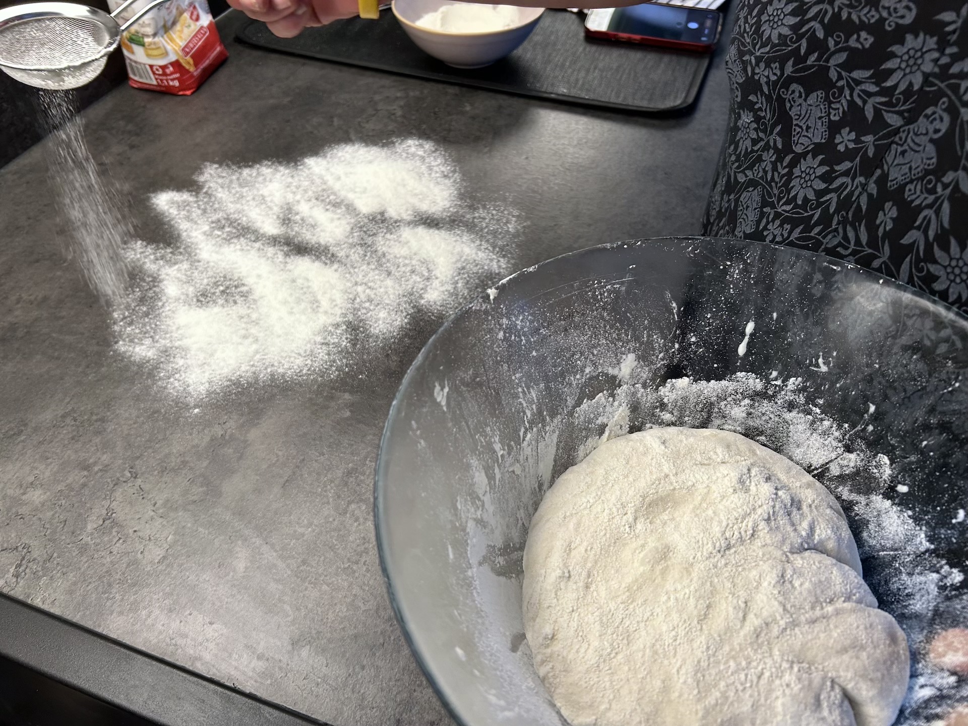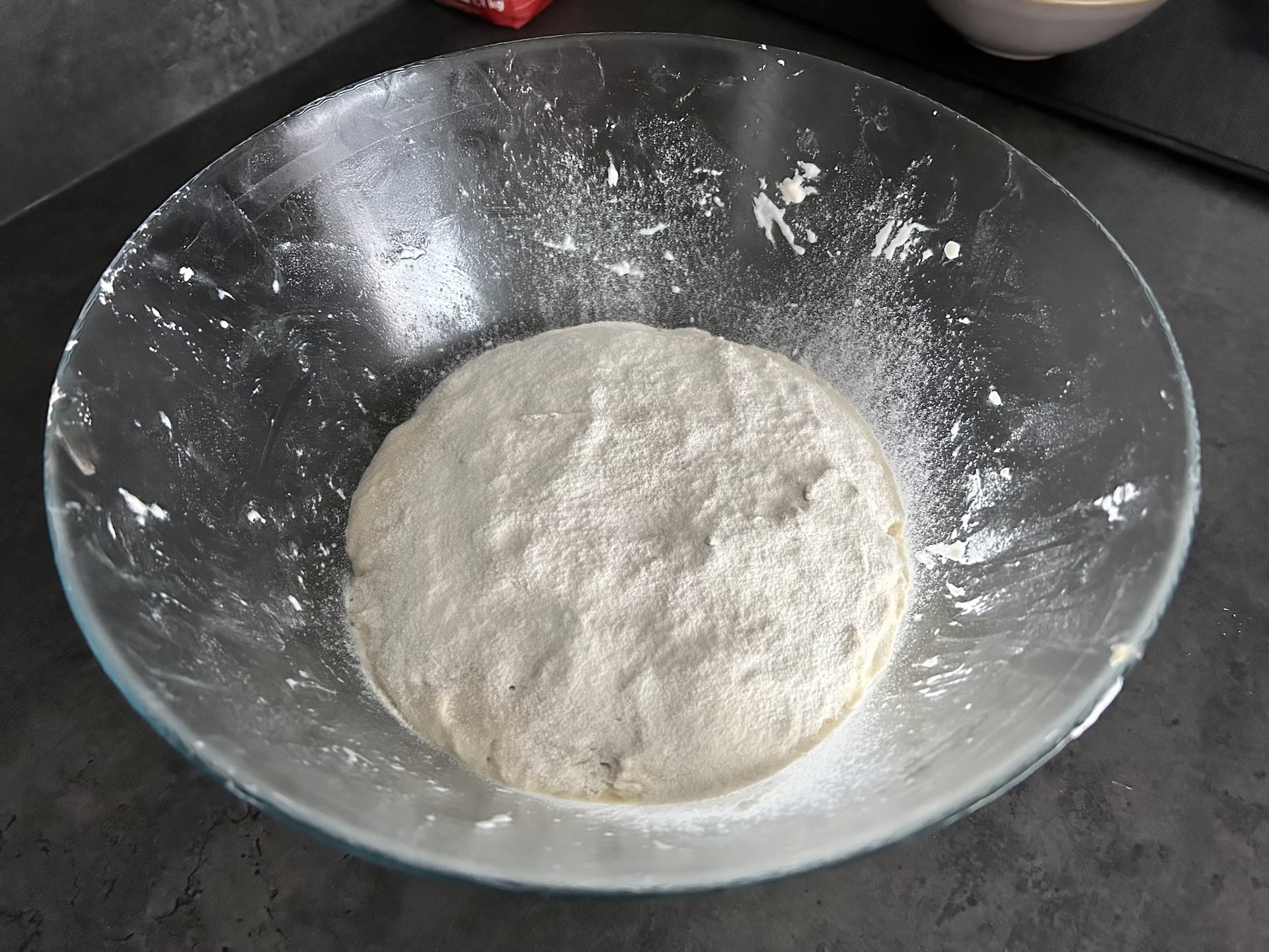 Wyrabianie i rośnięcie: Wyrabiaj ciasto przez około 10 minut, aż będzie jednolite i elastyczne. Przykryj ściereczką i odstaw w ciepłe miejsce na około 40 minut, aż podwoi swoją objętość. Sugeruję np. delikatne nagrzanie piekarnika, a następniewłożenie tam ciasta.