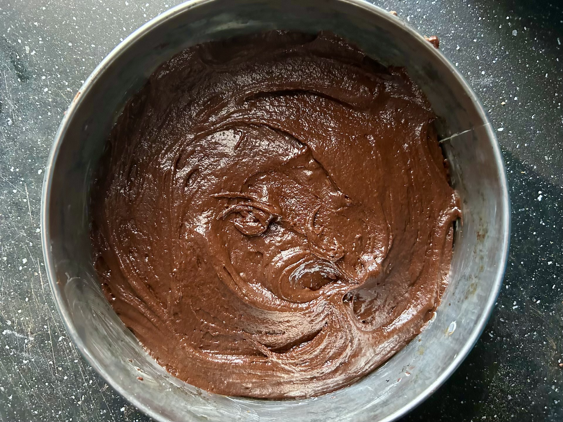 W jednej misce wymieszaj suche składniki: przesianą mąkę, kakao, proszek do pieczenia i sodę.