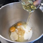 Dodaj sodę oczyszczoną, proszek do pieczenia, sól, przyprawy i mąkę. Wymieszaj całość (nie musisz tego robić zbyt dokładnie, jeśli pozostaną smugi mąki, nie przejmuj się).
