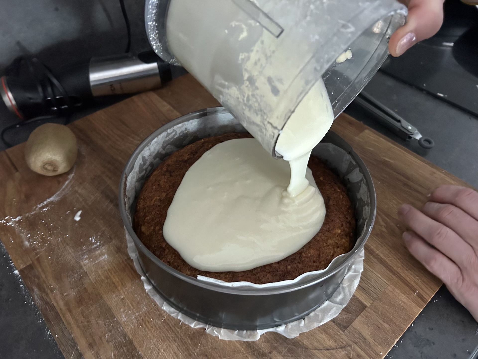 Wlej ciasto do przygotowanej formy i wyrównaj jego wierzch.