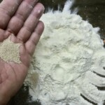 Przygotowanie składników suchych: Przesiej mąkę na blat. Dodaj pół łyżeczki soli i dokładnie wymieszaj z mąką. Następnie dodaj suszone drożdże i ponownie wymieszaj.