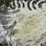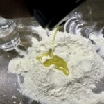 Dodanie płynów: Wlej do mąki około 100 ml oliwy extra vergine oraz około 100 ml wódki.