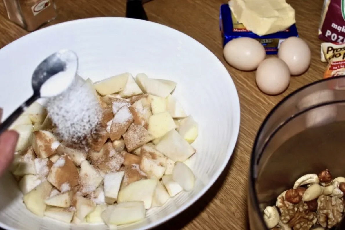 Dodatki: mielony cynamon, mieszanka orzechów lub bakalie (według uznania), miód (do polania po upieczeniu).