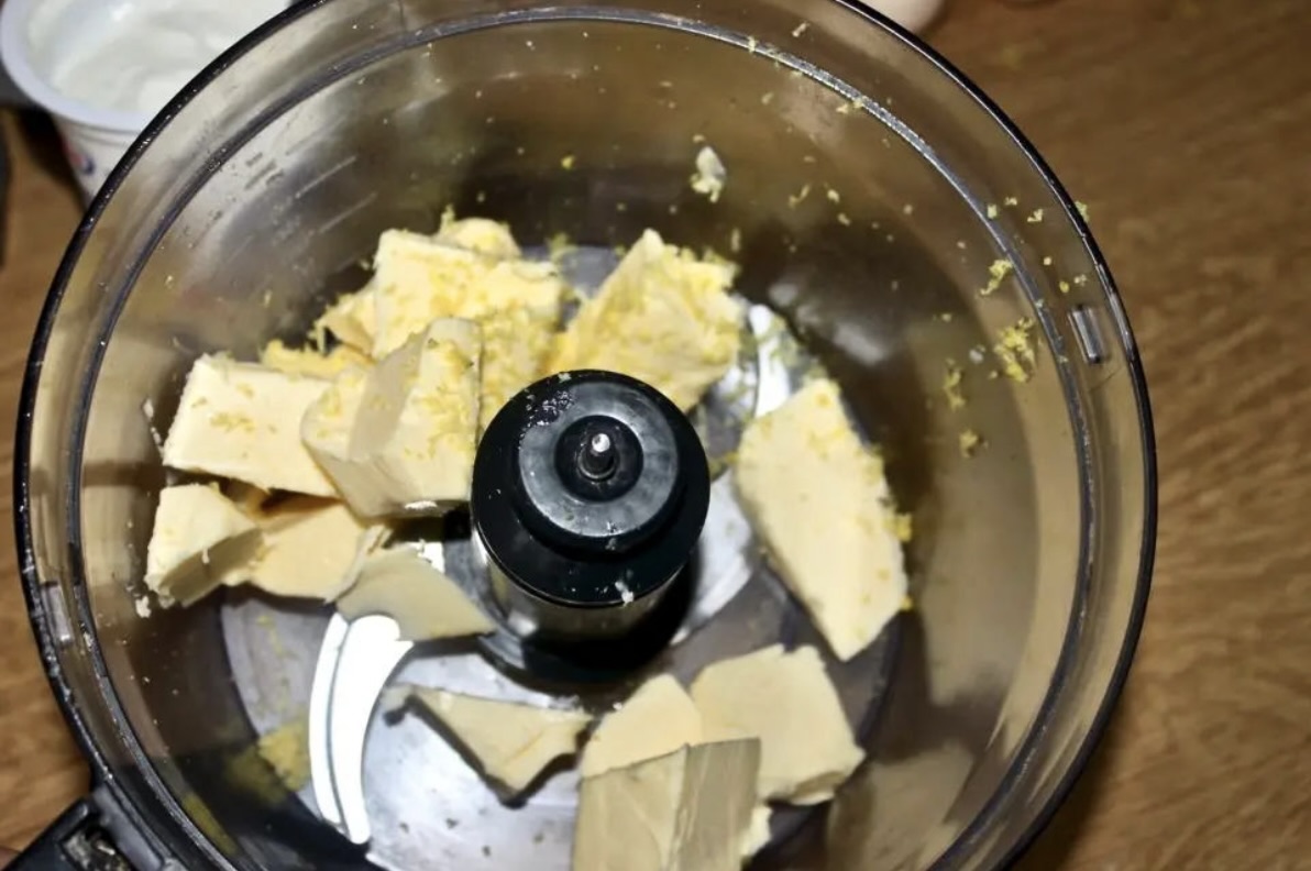 W misce malaksera zmiksuj miękkie masło z cukrem, wanilią oraz skórką otartą z cytryny na gładką masę.