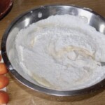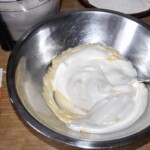 Łączenie: Ubita pianę delikatnie wmieszaj do masy maślanej. Na koniec partiami (po 2 łyżki) dodawaj mąkę, delikatnie mieszając, aż ciasto będzie gładkie.