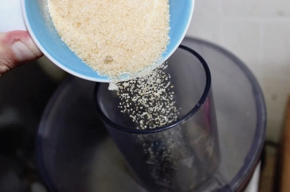 Dodatki słodzące i mąka: 150 g cukru trzcinowego, 300 g mąki pszennej.