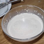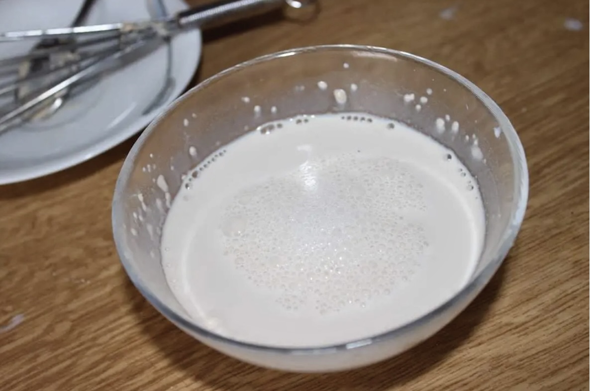 Zaczyn: W miseczce wymieszaj ciepłe mleko z suchymi drożdżami. Przykryj ściereczką i odstaw na 20 minut.