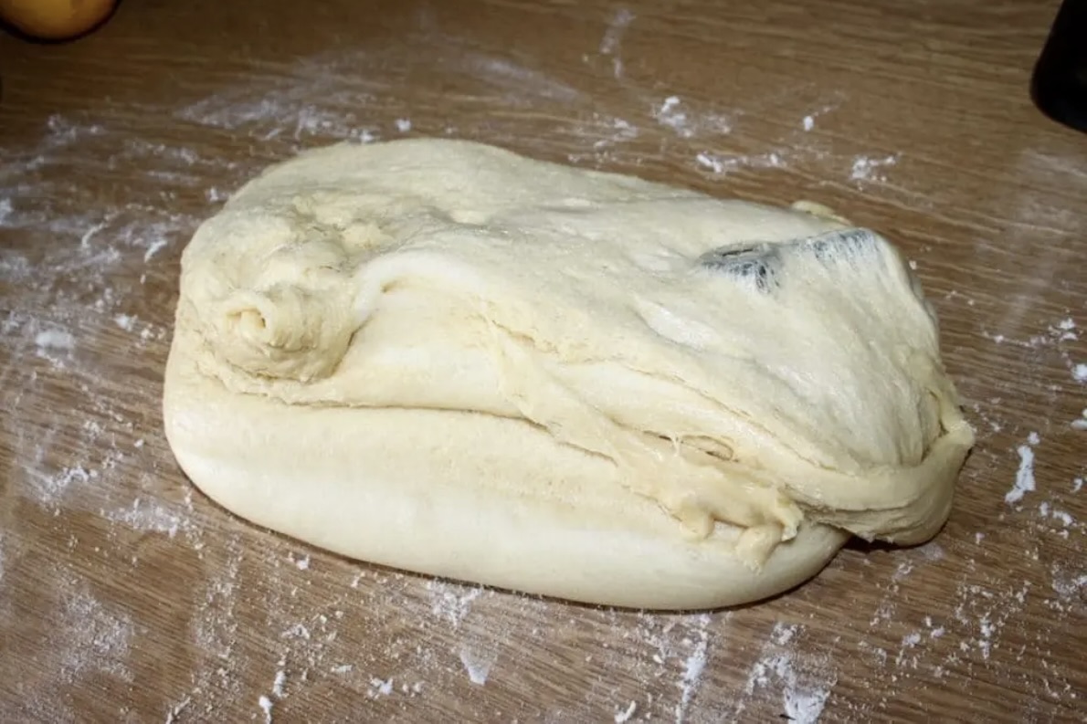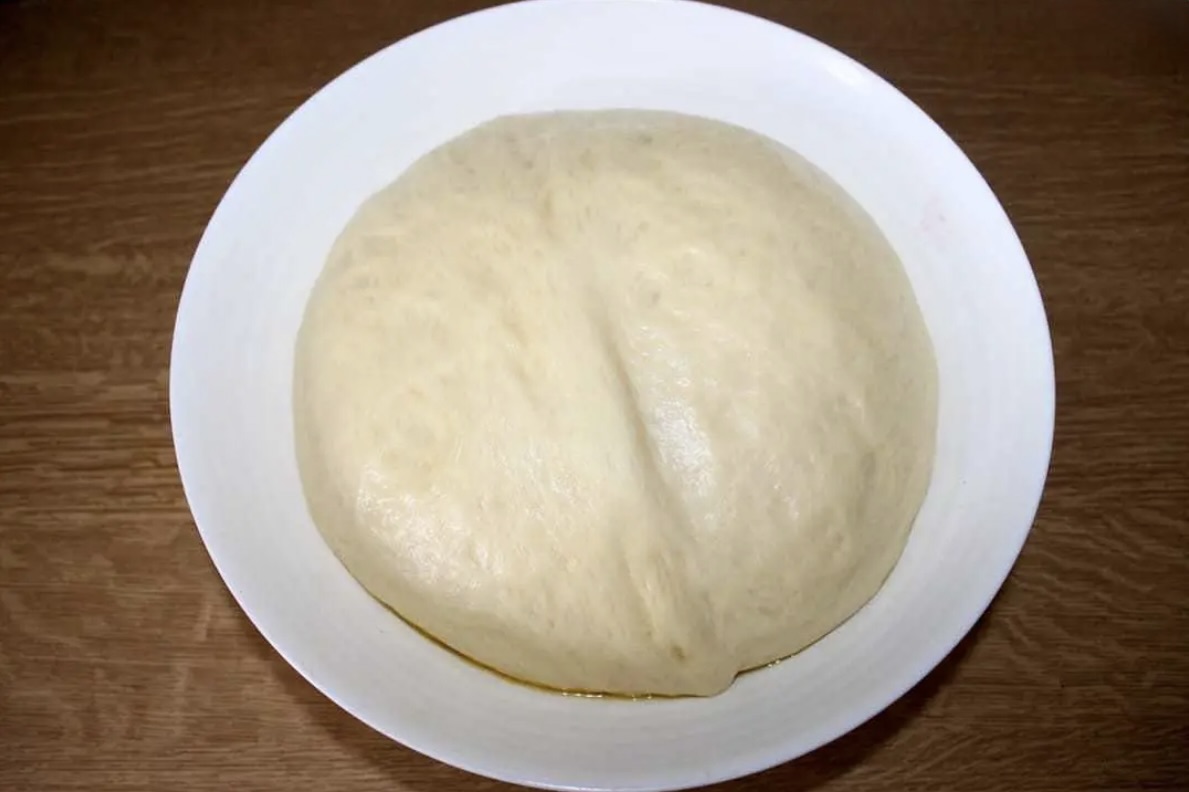Wyrośnięte ciasto rozpłaszcz dłońmi, a następnie przełóż na blachę wysmarowaną tłuszczem.