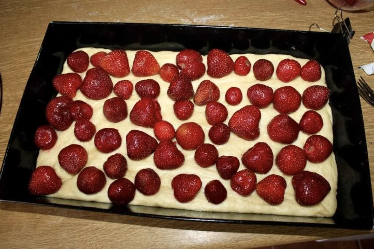 Ciasto z truskawkami to obowiązkowa pozycja w letnim menu, szczególnie w sezonie truskawkowym. Jedzmy truskawki, gdy są, bo ich czas jest zwykle bardzo ograniczony. W tym przepisie truskawki „zatopiłem” w tradycyjnym, bardzo klasycznym cieście drożdżowym, takim uniwersalnym. Efekt nie mógł być inny, aniżeli bardzo zadowalający. Ciasto jest po prostu pyszne, zasmakuje szczególnie amatorom właśnie ciasta drożdżowego i oczywiście truskawek. Jednych z najsmaczniejszych owoców na całym świecie.