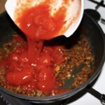 Duszenie: Wlej puszkę pomidorów, sok z połowy cytryny oraz pół szklanki wrzącej wody. Posól do smaku, a następnie duś pod przykryciem na małym ogniu przez około 5 minut.