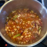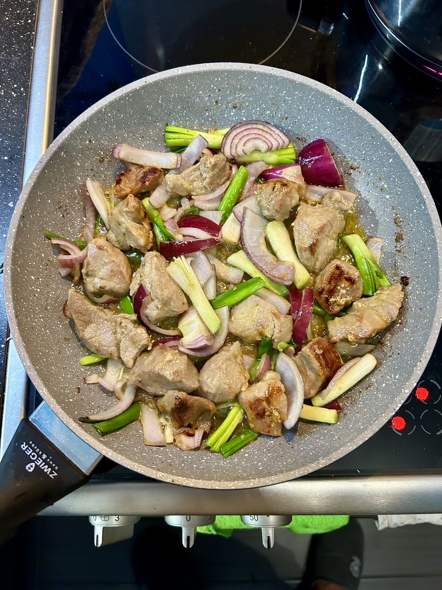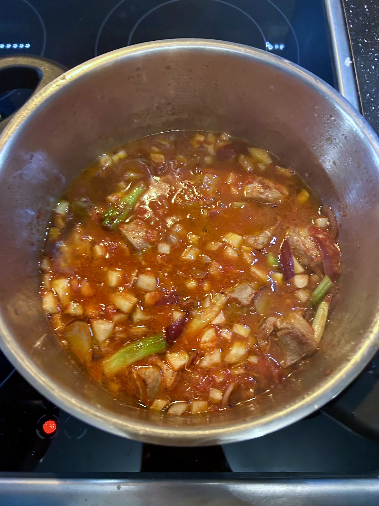 Przykryj rondelek, zmniejsz ogień do minimum, a następnie duś całość pod przykryciem przez około 1 godzinę, aż mięso będzie miękkie.