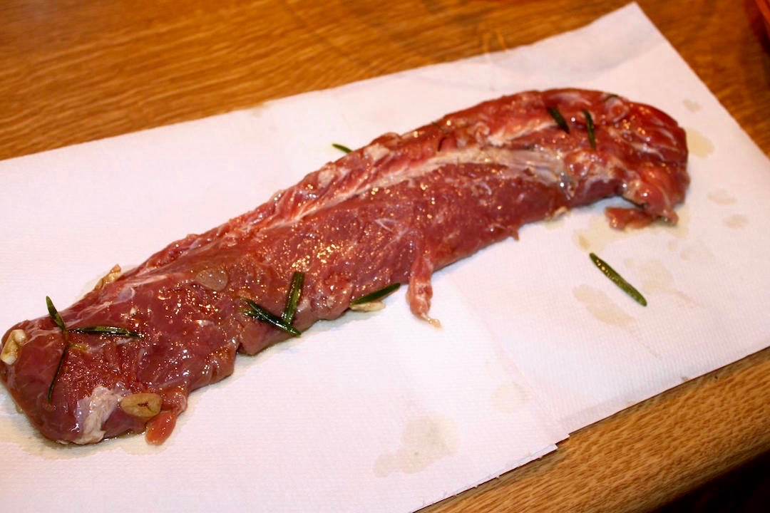 Tuż przed przygotowaniem wyjmij comber z marynaty i oczyść go z przypraw oraz nadmiaru oliwy.