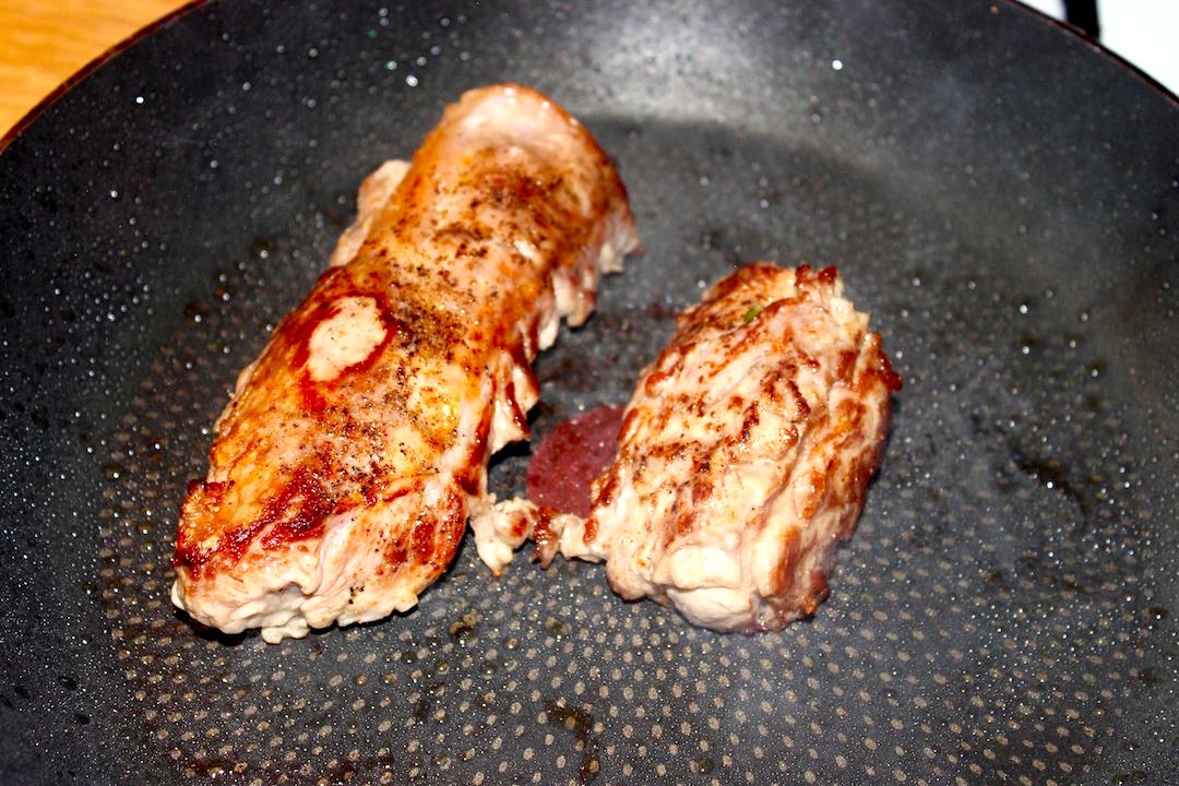 Smaż na mocno rozgrzanej patelni przez około 3 minuty, aż pięknie się zrumieni. Smażenie musi być krótkie, aby zamknąć pory z zewnątrz, a mięso w środku pozostało soczyste.