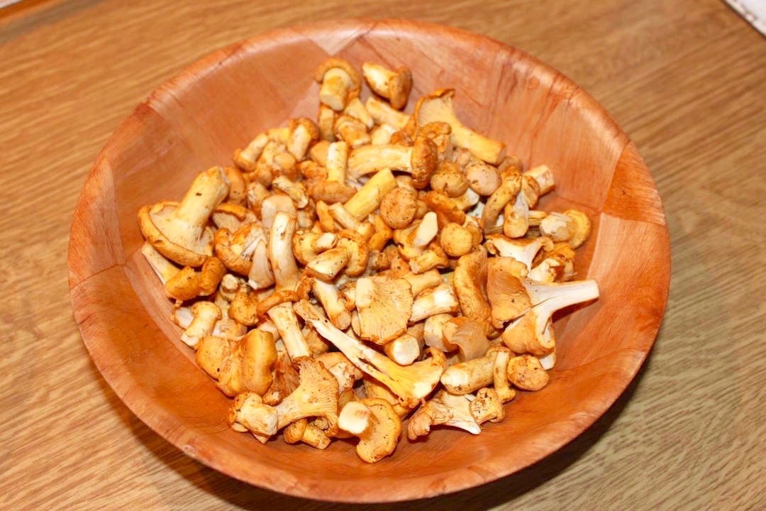 Szybko oczyść 200 gramów kurek i przelej przez 2 sekundy bieżącą wodą.