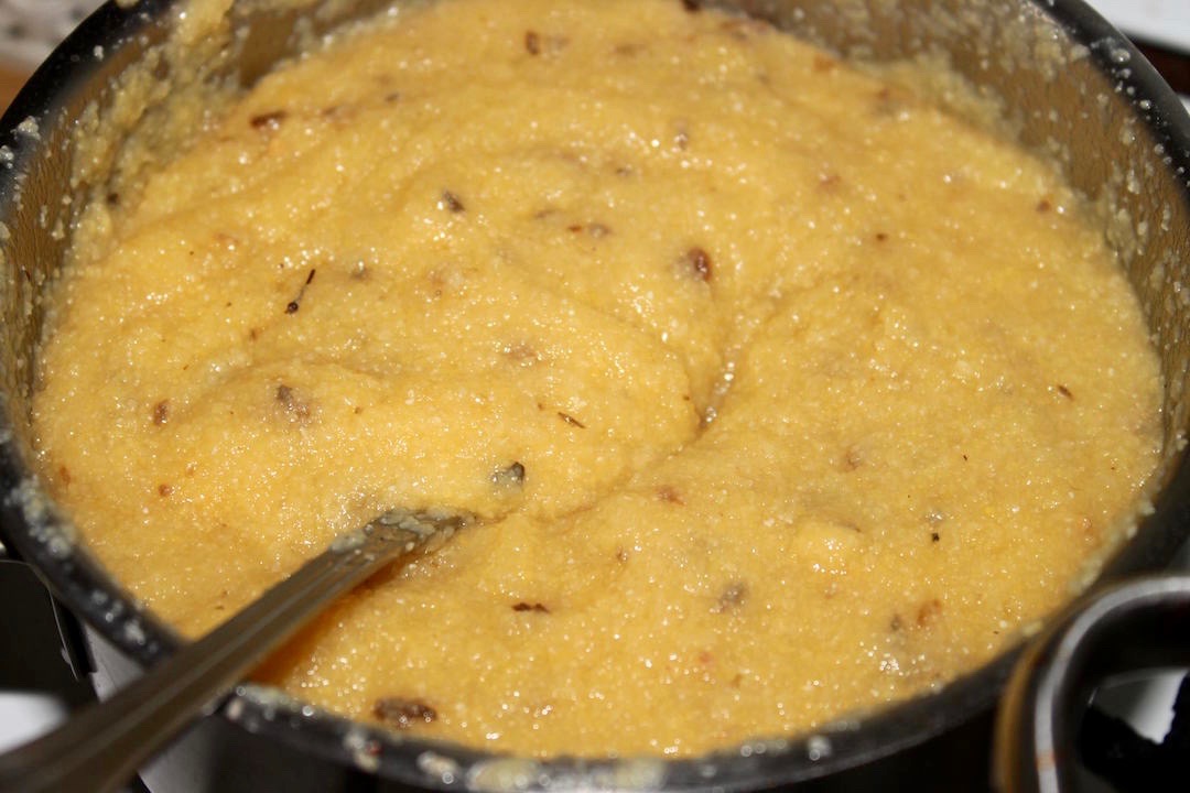 Wskazówka: Sugeruję dodanie pod koniec łyżki masła i startego parmezanu, aby polenta była bardziej aksamitna.