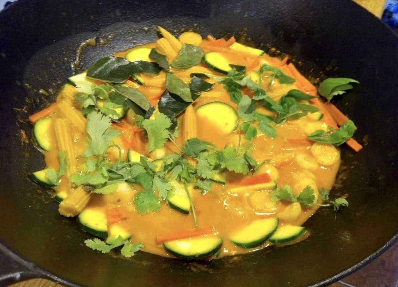 Aromatyzowanie: Dodaj liście kolendry, bazylii i limonki kaffir.