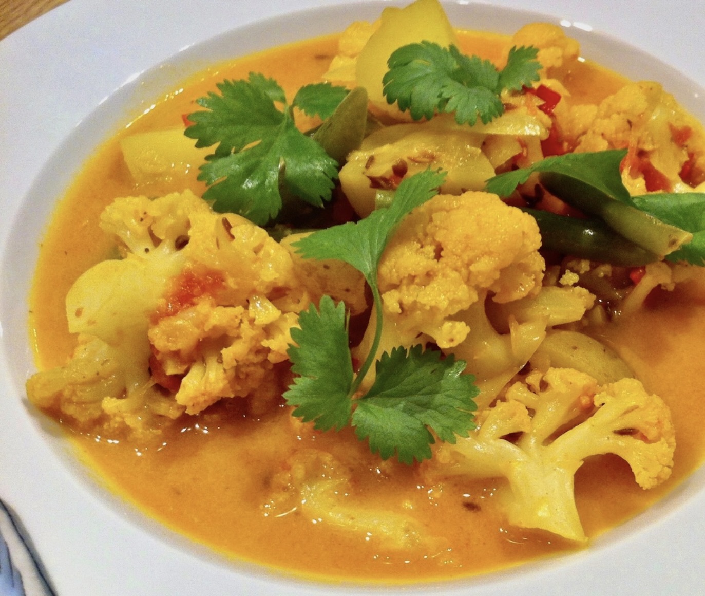 Curry z kalafiora jest prostym, łatwym i szybkim daniem. Jeśli dysponujesz odpowiednim arsenałem przypraw stosowanych w kuchni indyjskiej (tych ogólnodostępnych) przyrządzenie tego dania będzie prawdziwą przyjemnością. Feeria kolorów i aromatów w Twojej kuchni wyostrzy Ci apetyt w mgnieniu oka. I tak, jak w przypadku prawie wszystkich dań azjatyckich najwięcej czasu zajmie Ci przygotowanie składników. Samo gotowanie to po prostu bajka. Smak niepowtarzalny. To curry, które przygotujesz na bazie bulionu jarzynowego i mleka kokosowego (dowiedz się co to jest mleko kokosowe) z dodatkiem kalafiora, pomidora, fasolki szparagowej i ziemniaków z dodatkiem aromatycznych przypraw. Łatwizna. Uwierz.